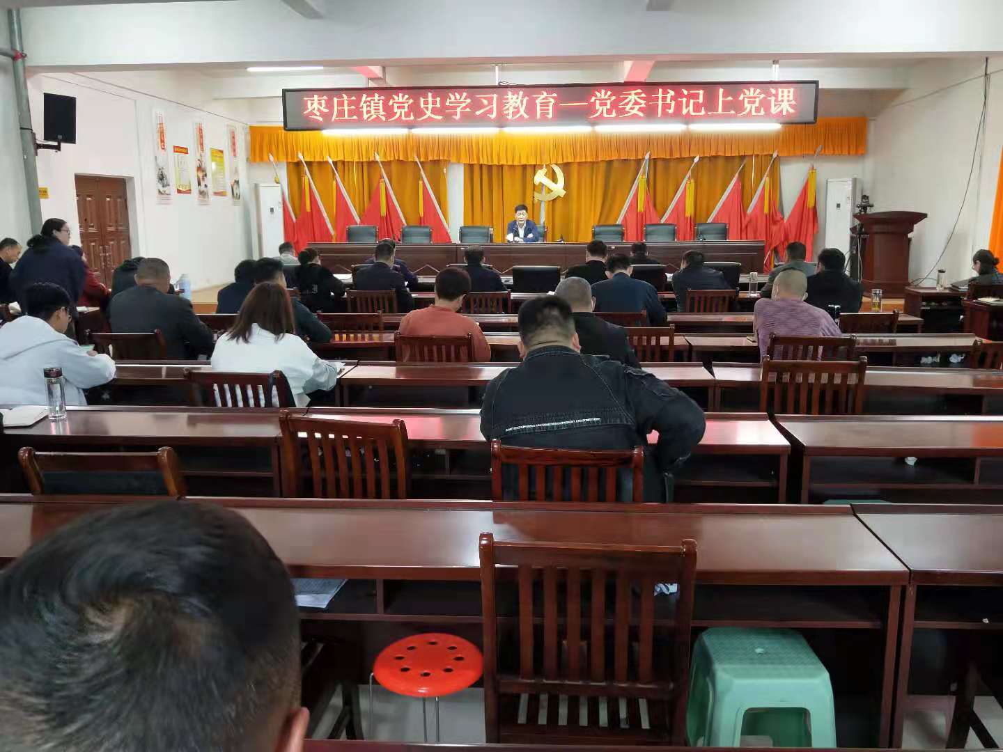 4月19日,枣庄镇举行“党史学习教育——党委书记讲党课”活动,镇直机关全体党员、各村(居)“两委班子”成员参加。