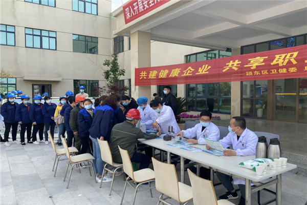 临到中午,全体人员赶赴阜阳皖能环保电力有限公司,在厂区设置展台,为当班员工科普职业病防治宣传和健康义诊。