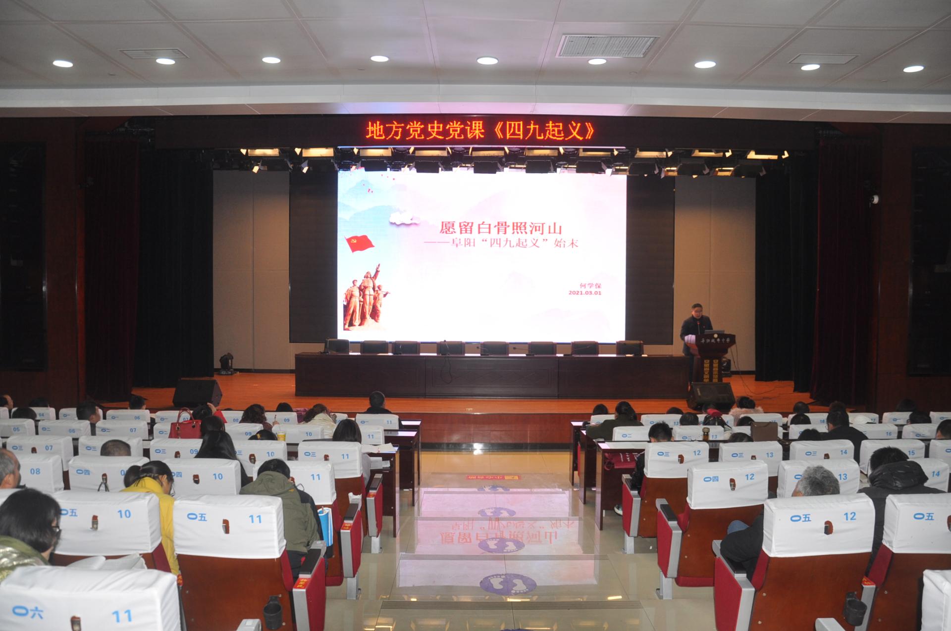 报告中,四位教师分别以《愿留白骨照河山——阜阳“四九起义”始末》《中国共产党的诞生》《新中国经济第一战》《对外开放格局的形成》为题作了专题报告,内容深入浅出、细节详实,具有很强的思想性和启发性,使全体教职工受到了深刻党性教育。