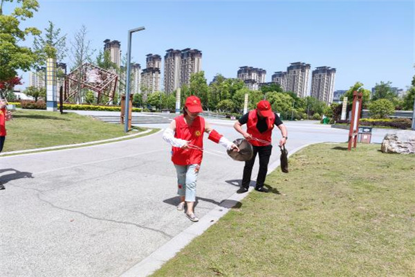 活动中,志愿者身着“颍东区志愿者”字样红马甲,边走边捡游客丢弃的矿泉水瓶、果皮、废纸、烟蒂、包装袋等垃圾。同时向游客宣讲爱护环境、保持公共卫生的理念,得到游客的赞许和积极响应。