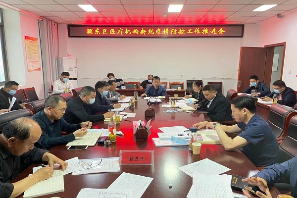 5月18日下午,颍东区卫健委召开全区医疗机构新冠疫情防控工作推进会。委属相关股室负责人、各医共体牵头医院院长、各乡镇卫生院、社区卫生服务中心主要负责人参会。