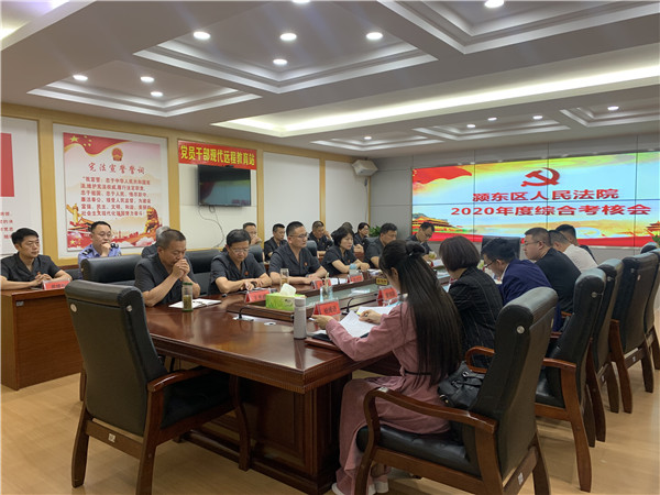 5月20日下午,颍东区委综合考核组一行对颍东法院2020年度领导班子和区管领导干部进行年度综合考核。院党组成员、各庭室负责人及干警代表参加考核会,会议由院党组书记、院长胡龙汉主持。
