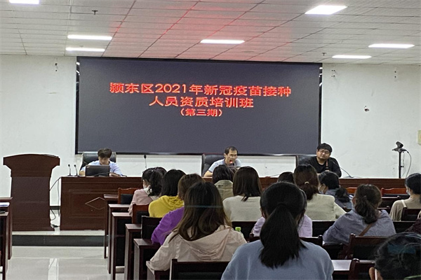 5月23日,颍东区疾控中心举办第三期新冠疫苗接种人员资质培训班,邀请阜阳市疾控中心免疫规划科科长徐海洋担任讲师,该区各疫苗接种点110余人参加,颍东区疾控中心副主任郭海昊主持。
