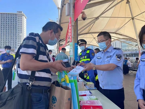 6月5日,颍东区司法局在火车站广场开展以“人与自然和谐共生”为主题的“六·五”环境日宣传活动。