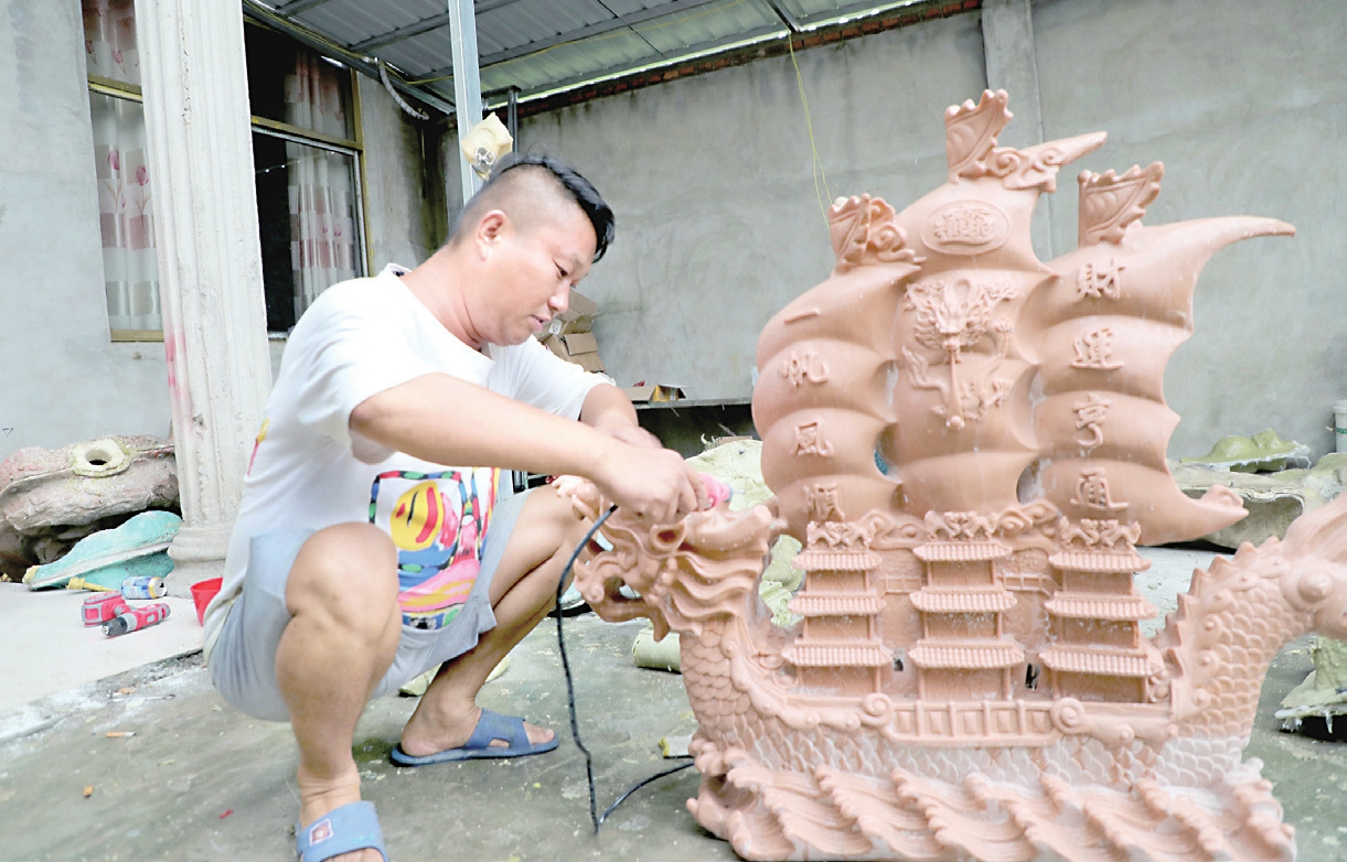 “这两年,农村人的日子越过越好,更加注重美化生活环境。小洋楼盖好了,装修、家电样样不缺,不少人喜欢买些工艺品摆放在家里,既有美好的寓意,又美观漂亮。”张涛判断,这里面一定有商机,就决定试一试。