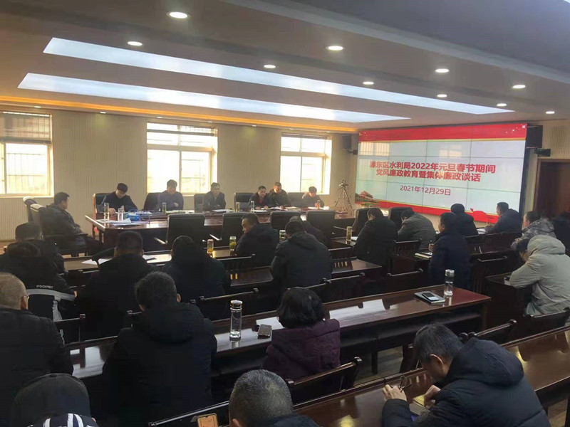 12月29日,颍东区水利局党组书记、局长宫来龙主持开展2022年元旦春节党风廉政教育暨集体廉政谈话,全局干部职工参加。