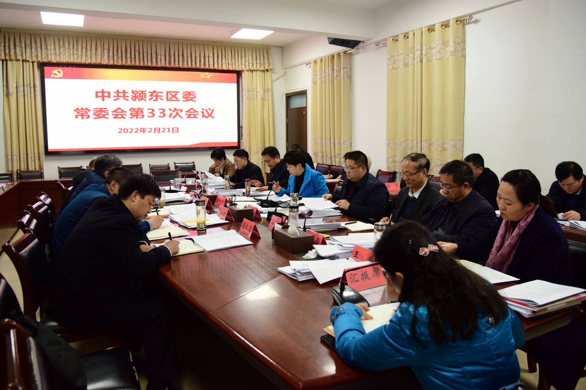 2月21日,颍东区召开区委常委会会议。市委常委、统战部部长、区委书记张俊杰主持会议并讲话。