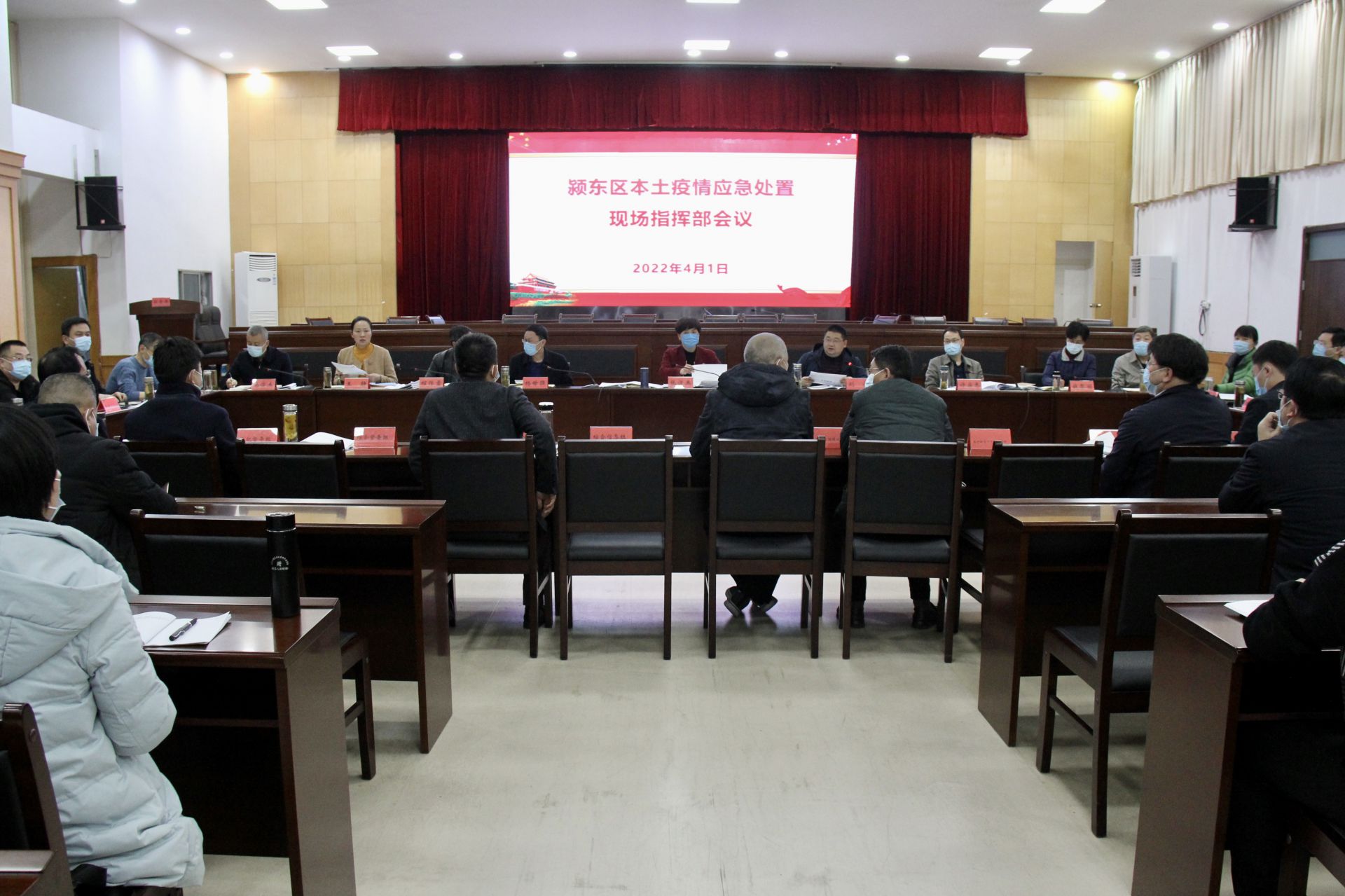 4月1日晚,颍东区召开本土疫情应急处置现场指挥部会议,市委常委、统战部部长、区委书记张俊杰参加会议并讲话,区委副书记、区长刘健主持会议。