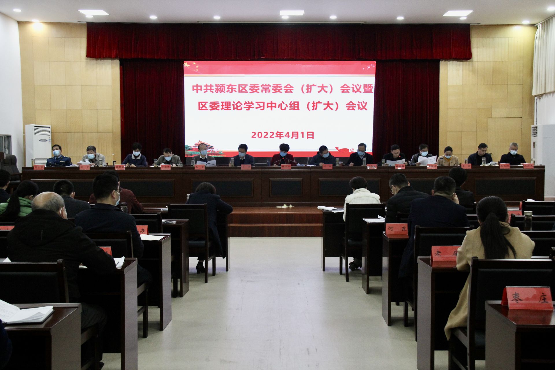4月1日晚,颍东区召开区委常委会(扩大)会议暨区委理论学习中心组(扩大)会议,市委常委、统战部部长、区委书记张俊杰主持会议并讲话。