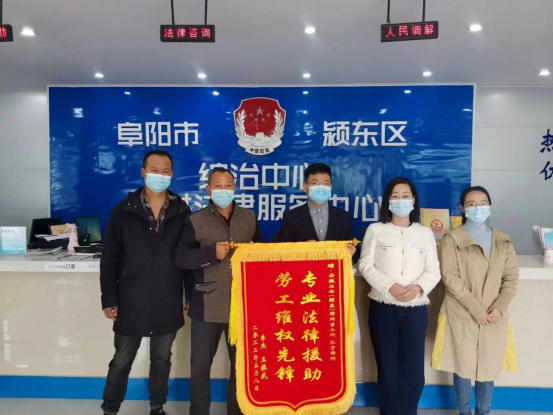 “真心感谢颍东区法律援助中心和张宇律师的大力帮助,才让我们拿回自己的血汗钱!”5月9日,法律援助受援人送上了一面写有“专业法律援助 劳工维权先锋”的锦旗,表达自己衷心的感谢。