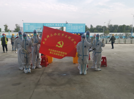 第三党支部党员干部职工在简短的缅怀先烈仪式后,对工地全体施工人员近500人进行了咽拭子采集。据悉,此次新冠疫情以来,阜阳市肿瘤医院第三党支部党员干部职工积极走进工地、社区、疫点参加新冠肺炎核酸检测,截止到目前累计近80余人次,采集咽拭子一万余人。