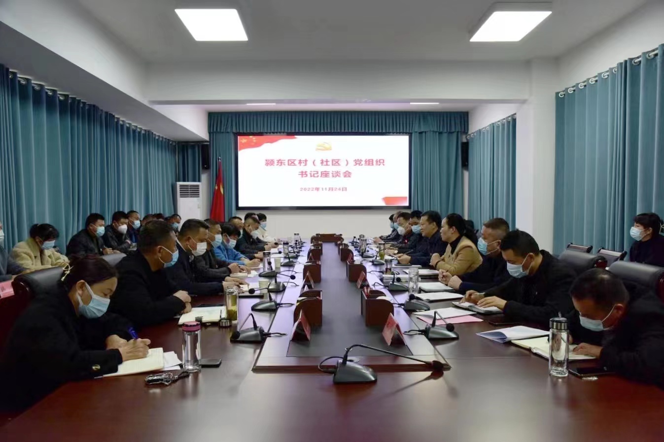 11月24日上午,颍东区召开村(社区)党组织书记座谈会,区委书记赵群宣讲党的二十大精神并讲话,区委常委、组织部部长、统战部部长王静主持会议。