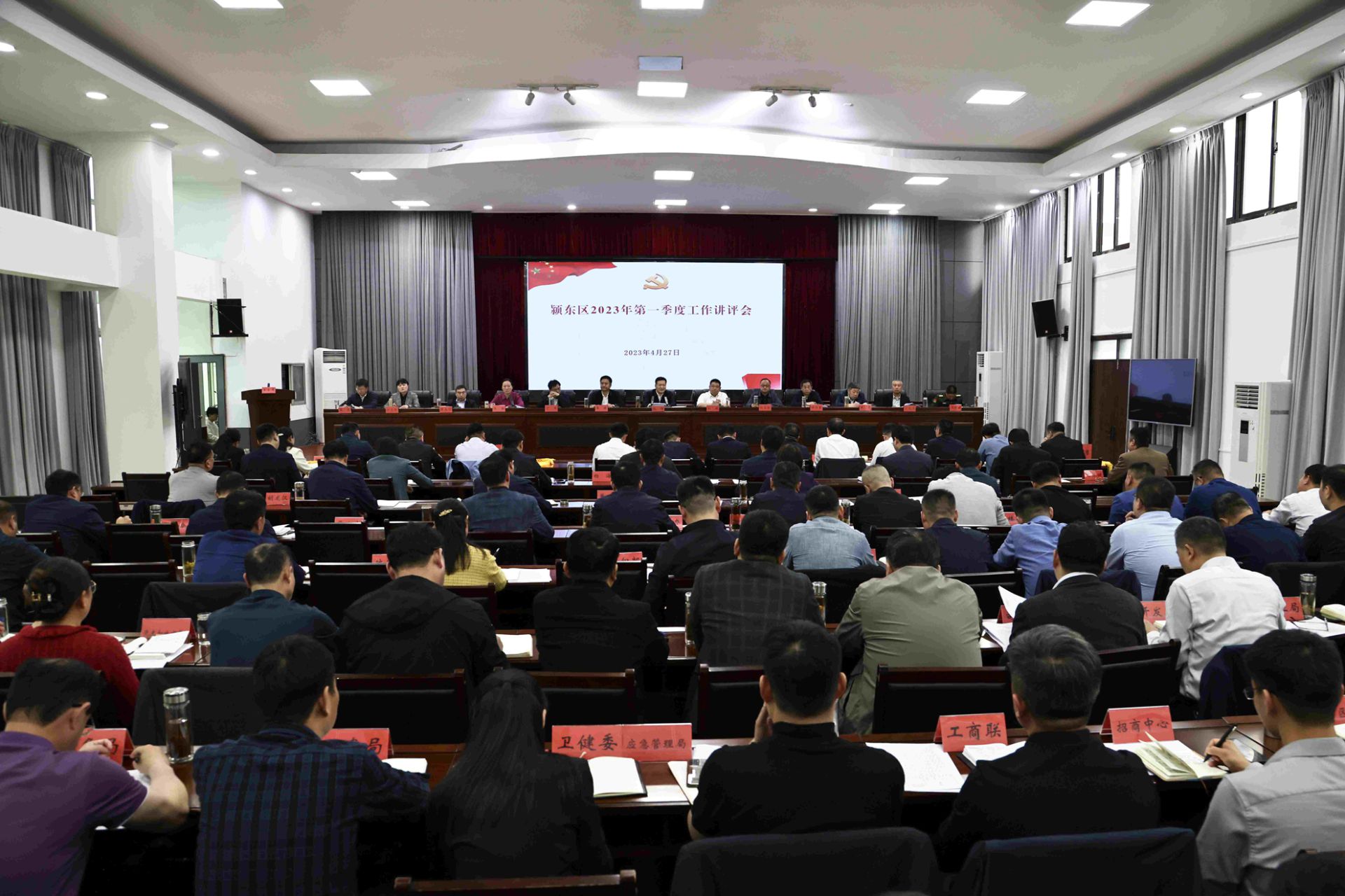 4月27日下午,颍东区2023年第一季度工作讲评会召开,区委书记赵群出席会议并讲话。区委副书记、区长刘健通报一季度重点工作情况,区委常委、组织部部长、统战部部长王静主持会议。