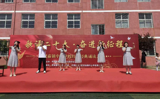 近日,老庙镇中心学校开展了“歌诵二十大 奋进新征程”红色经典诵读活动。来自各校的近50名师生用真挚的情感诵读了红色经典著作,用诵读感悟思想伟力,用声音传递奋进力量。