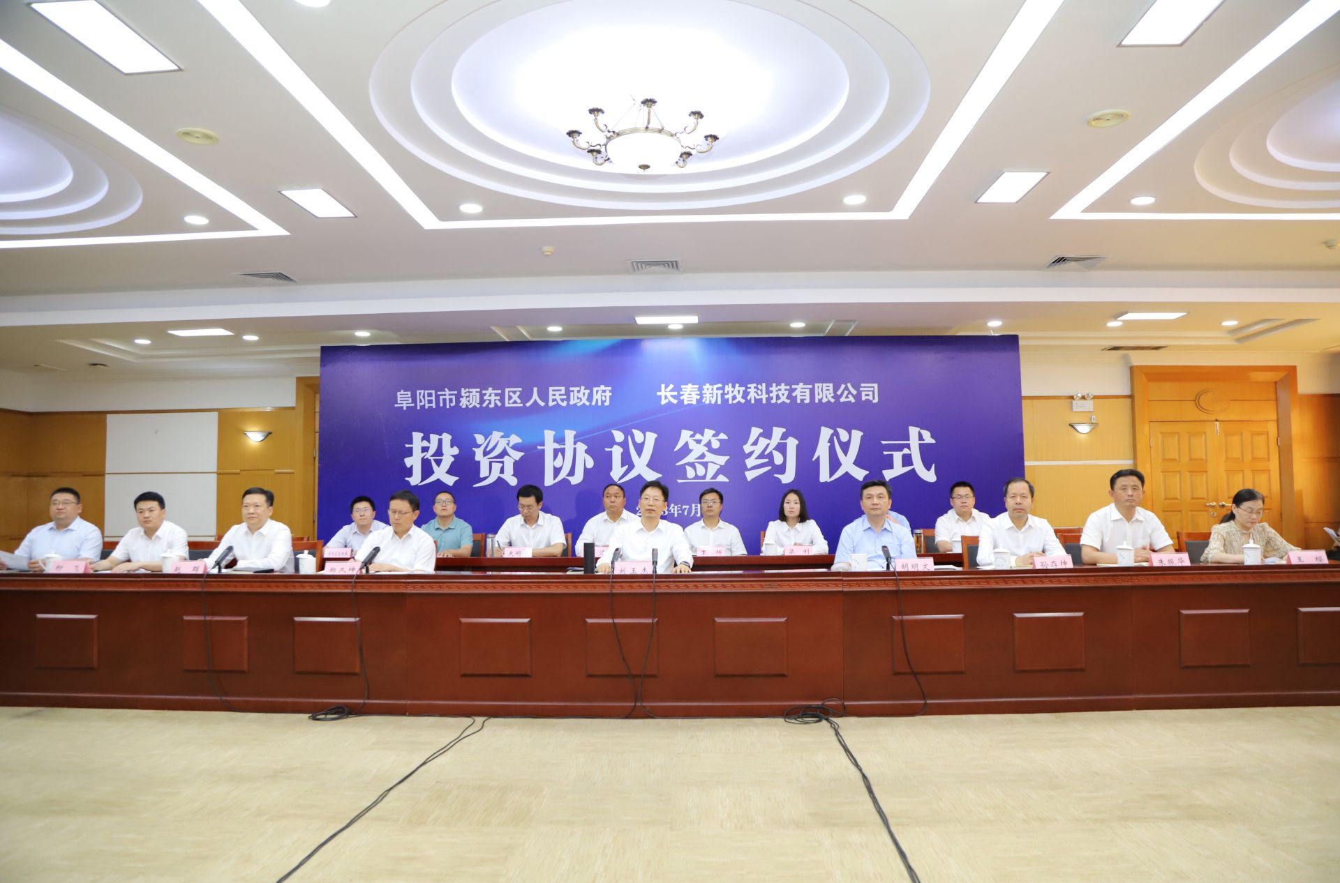7月5日,阜阳市颍东区人民政府与长春新牧科技有限公司通过视频方式举行项目合作签约仪式,市委副书记、市长刘玉杰出席并讲话。长春新牧科技有限公司副董事长孙嘉逸、总经理申利,吉林大学动物科学学院副院长袁宝,市领导胡明文、郑久坤,市政府秘书长孙存坤,区委书记赵群,区委副书记、区长刘健,区委副书记丁辉,区政府副区长史明康、梁利等参加。