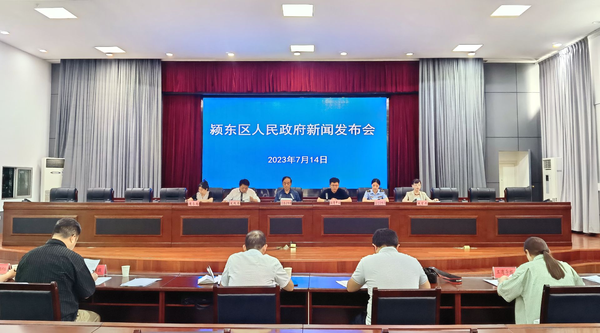 7月14日上午,颍东区召开新闻发布会,来自驻阜省级媒体、市级媒体及区级媒体的10余家新闻媒体记者参加了新闻发布会,新闻发布会由区委宣传部常务副部长张永军主持。区招商投资促进中心、商务局、应急管理局、发改委、教育局等5个部门新闻发言人出席会议,并现场答记者问。