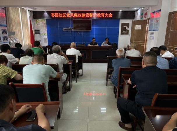 8月10日上午,河东街道枣园社区召开党风廉政建设警示教育会议,进一步推动主题教育走深走实,深化党风廉政警示教育。