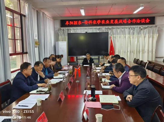 10月20日,在安徽科技学院农学院会议室,召开了阜阳颍东——安科农学农业发展战略合作洽谈会。由阜阳市颍东区人大常委会农工委主任王文世,阜阳市农业农村局农技中心副主任程伟,颍东区枣庄镇党委书记杜云南带领该镇党委副书记韩雨露、镇农业综合服务站站长王启斌、阜阳名扬农业科技股份有限公司企业法人、颍东区杭伟专业种植合作社企业法人蒋祥红,阜阳市颍东区杭伟种植专业合作社总经理任虎等专程到安徽科技学院参加农业发展战略合作洽谈会。
